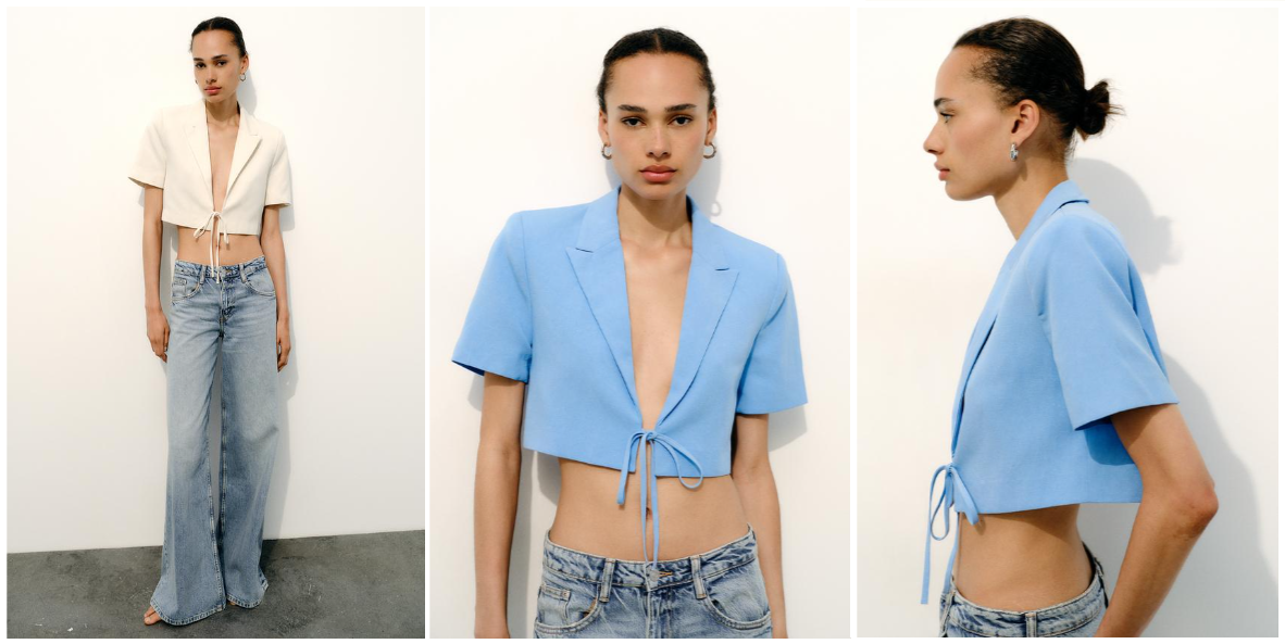 리본 장식이 유행하면서 크롭에도 리본이 가미된 여름 블레이저 크롭을 오프라인 매장과 자라 앱에서 자주 확인할 수 있었는데요.